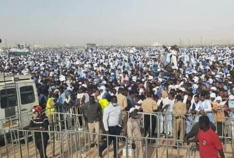 شهدت ساحة مطار نواكشوط القديم، بعد ظهر (الجمعة) تنظيم تجمع شعبي حاشد حضره عشرات الآلاف من سكان مختلف ولايات العاصمة الثلاث؛ وذلك في إطار نصرة النبي صلى الله عليه وسلم والتنديد بحملة الإساءة التي يتعرض لها في فرنسا.