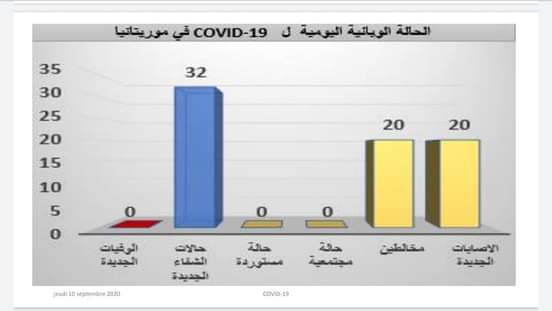أعلنت وزارة الصحة عن 20 إصابة جديدة بفيروس كورونا على كامل التراب الوطني وعن 32 حالة شفاء.