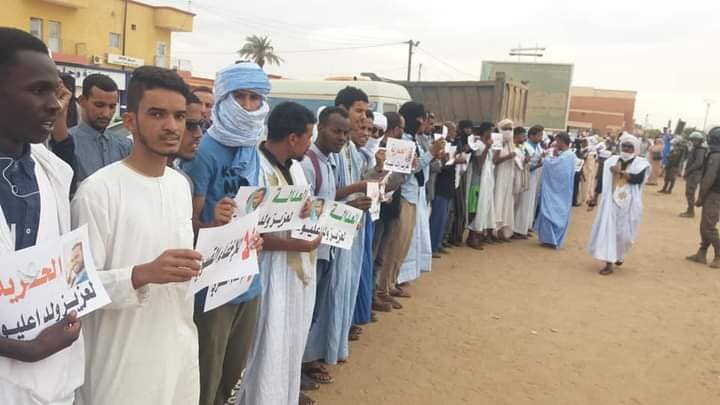 شهدت مدينة ازويرات عاصمة ولاية تيرس زمور، وقفة احتجاجية مطالبة بالإفراج عزيز ولد اعليوته. وقد شارك العشرات من الشباب في الوقفة الاحتجاجية، أمام مباني الولاية داعين للافراج عن المعني الذي اعتقل في ازويرات ونقل الى العاصمة نواكشوط.