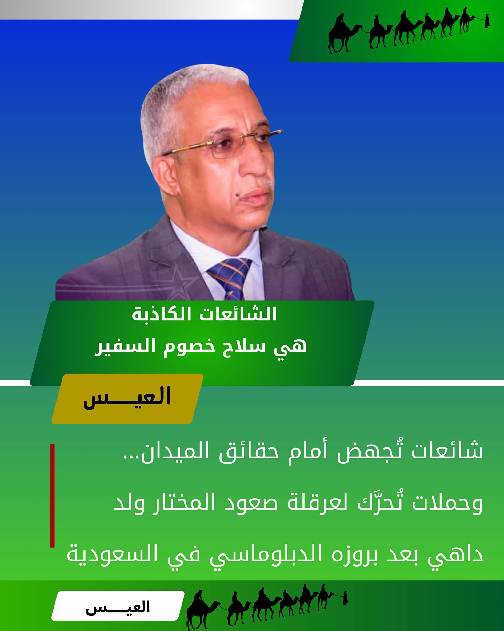 تابعت ببالغ الاستهجان الحملة المغرضة والممنهجة التي شنتها بعض الأطراف مؤخرا والتي لا تستهدف شخص السفير المختار ولد داهي فحسب، بل تستهدف النجاح والكفاءة التي طالما كانت سمة بارزة في مساره المهني والوطني.