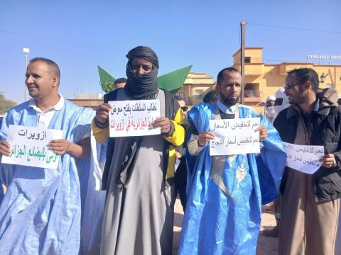 نظم عدد من سكان مدينة الزويرات اليوم الثلاثاء وقفة احتجاجية أمام مباني ولاية تيرس زمور، تنديداً بما قالوا إنها "موجة غير مسبوقة من ارتفاع أسعار المواد الاستهلاكية الأساسية" ومطالبة السلطات بالتدخل الفوري لضبط الأسواق.<